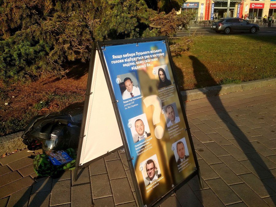 Помітно, що серед шести осіб у списку імовірних кандидатів на пост міського голови насправді п'ятеро, а не троє (як можна зрозуміти із листівки) є депутатами Луцької міської ради.