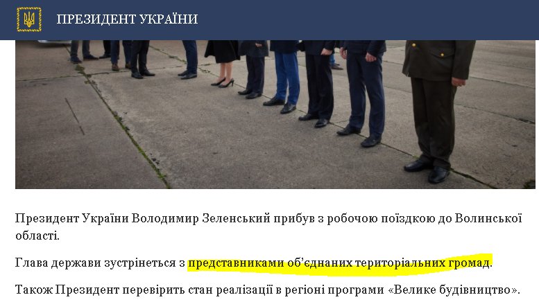 Чи відбулася анонсована на сайті Офісу президента зустріч з головами ОТГ, чи замість неї і була зустріч з партійним активом - невідомо. Але, найімовірніше, що саме ця зустріч з «напутнім словом» перед виборами і стала ключовим моментом візиту Зеленського на Волинь.