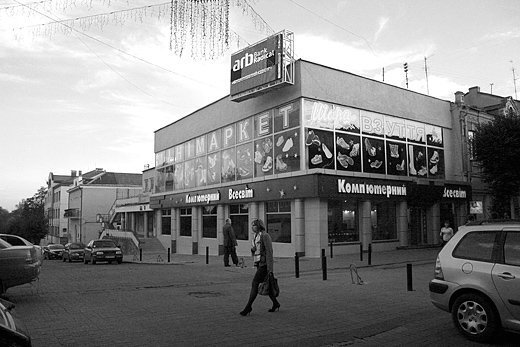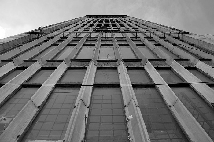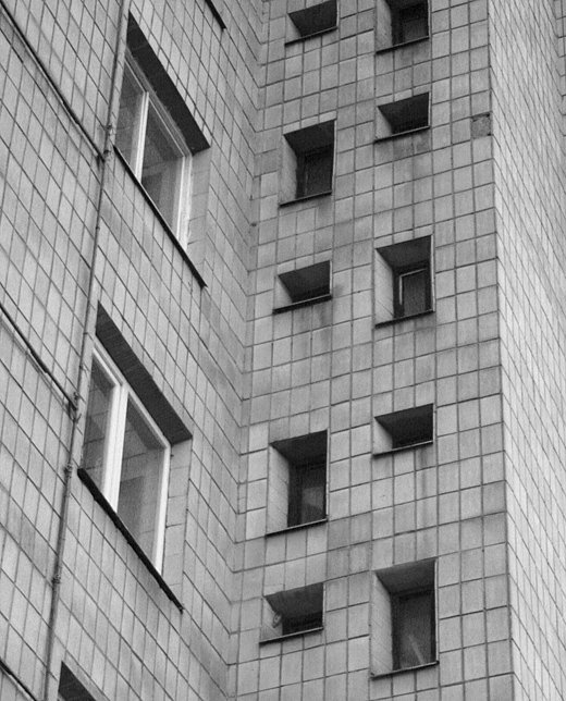 насколько мне известно, именно эти хаотичные окна в фасаде 8школы были запроектированы изначально как элемент фасада кинотеатра "Проминь", там где сейчас находится вход в клуб "Версаль"...но проект триста раз упрощали, в итоге окна ""уехали"" в школу..