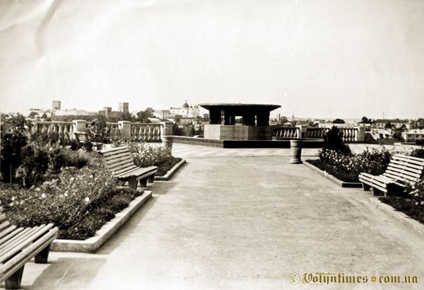 Як стверджують фахівці, ідея розкриття площі на живописну заплаву річки Стир належала колишньому головному архітектору міста Ю.В.Бородіну. Він перший гідно оцінив живописні види, що відкриваються звідти на долину річки й на історичне ядро міста, і домігся, щоб там не будували театр, який закривав би ці чудові краєвиди.