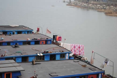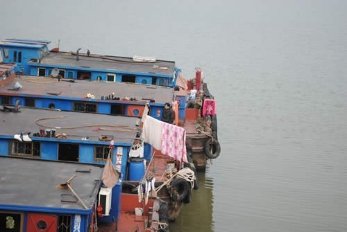 Жити тут можна прямо на роботі, як от ці люди, що працюють і живуть (судячи з побутових картинок) прямо тут, на баржах. Сушаться ковдри, кольорові жіночі блузки, труси, шкарпетки, чоботи з черевиками, іде пара з пічки, можливо, буржуйки - скоро час обіду, жінки перегукуються між собою, чоловіки зайняті своїми справами. Нормальна картина чийогось життя.