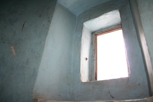 Зрештою сходи привели на найвищий поверх. Зовні споруди він обрамлений нішами. Це видно за формою отворів. Верхній поверх вежі виявився розбомбленим. Там купа сміття, будівельних обломків, вікон та макулатури.