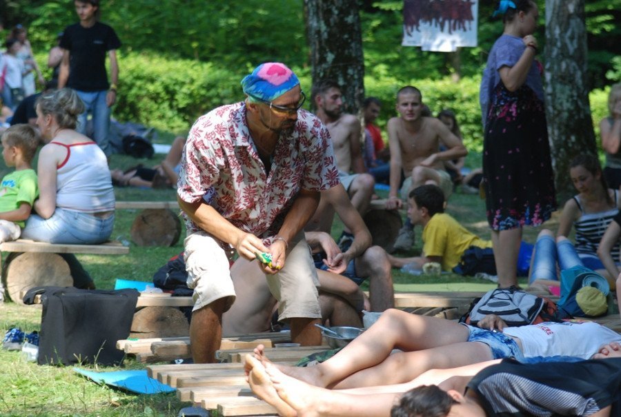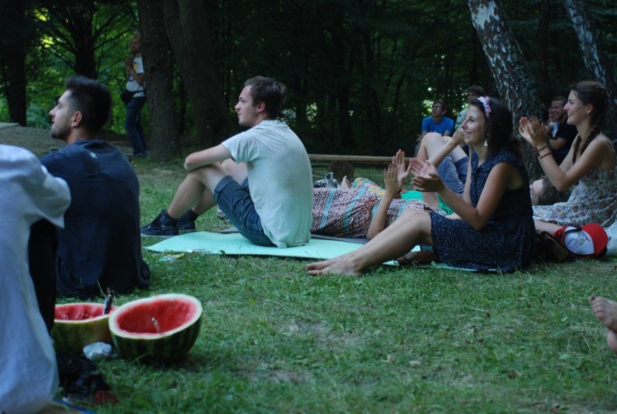 Щодо фестивальних моментів організаційних, то місце круте. Під боком ліс. Транспортне сполучення дороге, але є. З водою трохи напряг, бо на другий день довелося чекати довго машину, тому ми ходили до джерела. Хоча стежина імені Ріната Леонідовіча і саме джерело все компенсують.