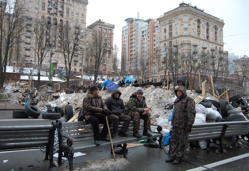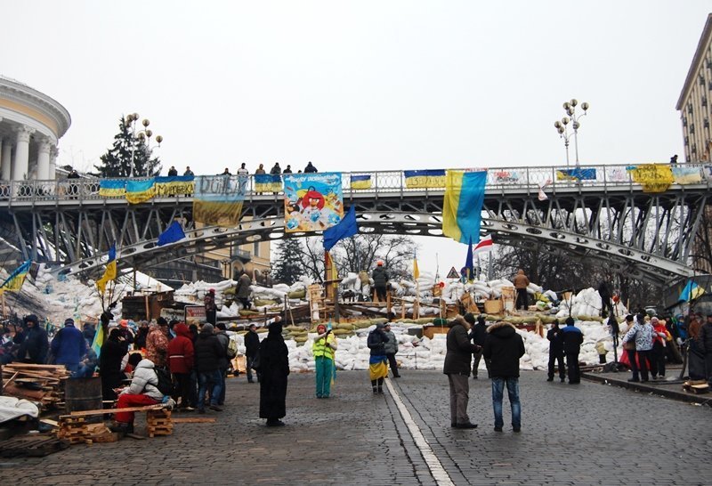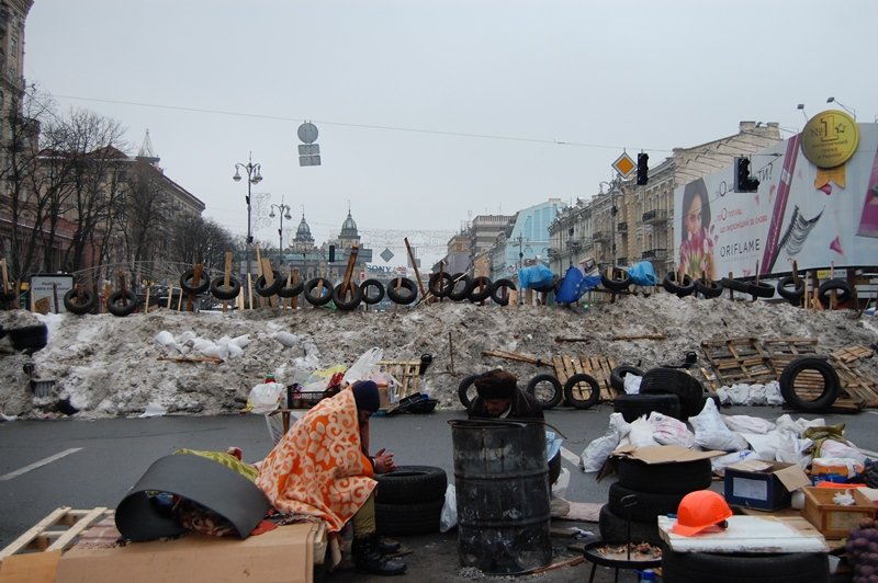 Дивно, але виявилося, що я знаю Київ. Раніше мені завжди здавалося, що тут можна заблукати. Тепер же я вешталася центром столиці, наче у себе вдома. Роздивлялася людей. Це найцікавіше. Всі такі різні. Ось тобі бабуся із Буковини у строкатій хустці, ось жінка із Закарпаття тримає ікону, а ось і чоловіки із Херсону гріються, охороняючи барикади, а ось і народний депутат-спортсмен у дорогому революційному взутті. О-о-о, знайомі хлопці з Луцька у помаранчевих касках. Йдуть спати, бо ж треба на ніч повернутися й охороняти Майдан.