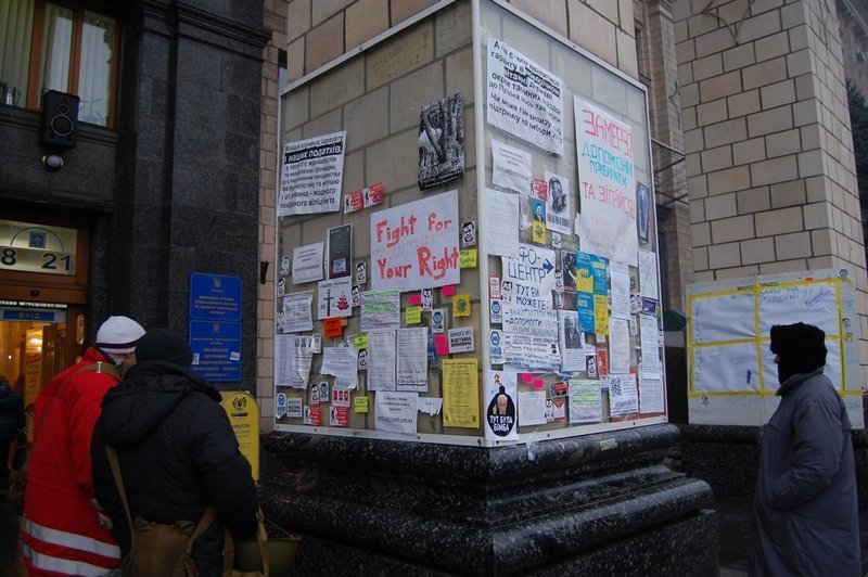 Власне так і минув увесь день і вечір. Мої зустрічі з друзями, які тусувалися на Майдані, чергувалися з відвідинами хлопців у формі. То на Банковій, то на Інститутській, то на Лютеранській. Мене вже впізнавали, не соромилися говорити і навіть просили не йти, а ще побути з ними й розповісти щось про себе, або як там, на Майдані.