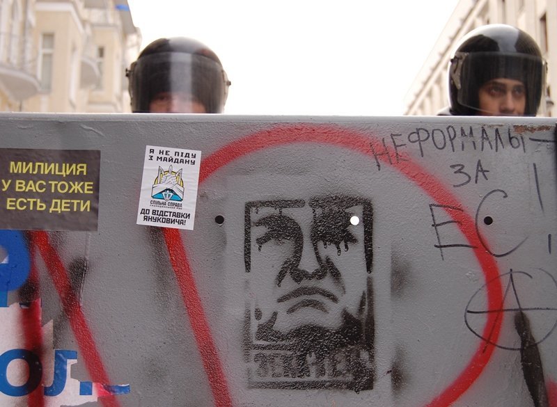 Хлопці з внутрішніх військ і самі ділилися зі мною думками про Майдан, деякі переконували, що їхні знайомі поїхали туди за гроші. Розповідали мені про свою амуніцію, про те, як хочуть додому, про те, як важко нерухомо стояти на місці. Про те, що більшість з тих, хто до них підходить, ображає й звинувачує. Про те, як їм образливо, коли їх називають беркутами. Про те, як неприємно, коли чимало людей фотографуються на їхньому фоні, наче у зоопарку. Але зізнавалися, що увага дівчат дуже приємна. Дехто навіть не соромився залицятися і сміливо пропонував заміж. А я у відповідь пропонувала декого поцілувати у щічку. Пам’ятаю хлопця із Полтави, який вже був готовий дозволити себе поцілувати, але так і не відважився через строгого командира при погонах поряд.