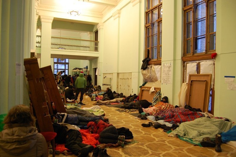 Йдемо у Жовтневий палац шукати волиняк. Як на зло, майже всі розійшлися. Килимки, ковдри. Нічого не бракує. Одягу, наче на секонд-хенді. Вирішили й самі відпочити. Мій провідник цілу ніч не спав. Постелилися і заснули. Солодкий сон у революційних умовах. «Мам, все добре. Я тут вирішила поспати. Не переживай. Тут все яскравіше, ніж по телевізору».