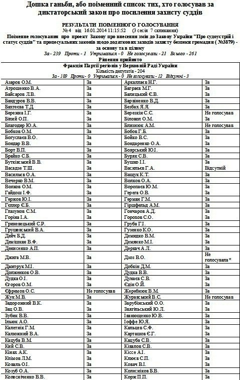 16 січня Україна поринула в новий етап беззаконня. "Регіонали" засвідчили, що народ їм сильно дошкуляє. Тому підняттям біло-синіх, червоних та тушкованих "копит" більшість "ухвалила" псевдозакони, покликані убезпечити бандитів при владі та їхню обслугу в суддівській та міліційній формах. Якби в Україні закони виконували – це би означало справді державний переворот, а також реальну загрозу для всіх налаштованих проти режиму громадян (себто більшість). Однак щирими зусиллями Януковича та його команди Україна вже давно перестала бути правовою державою. Тож застосування будь-яких законів – річ умовна і залежить від наявності політичної волі, яка є дуже мінливою.