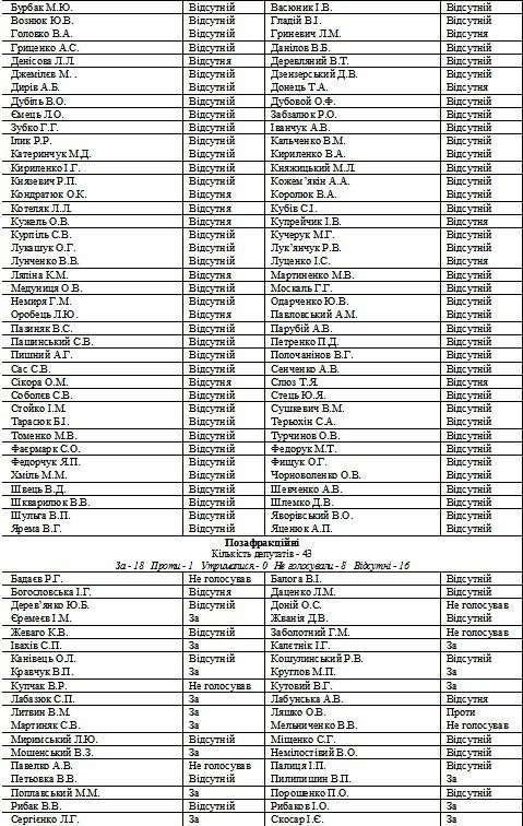 А тут список усіх так званих "ПОЗАфракційних" депутатів,що наосліп проголосували "ЗА" бюджет ганьби і національної зради.Його спрямовано на створення режиму, який тримається не на народній підтримці, а винятково завдяки наявності каральних органів. Себто на силових структурах та судах.Причому,усі "ПОЗАфракційні" представники Волині проголосували "ЗА"!