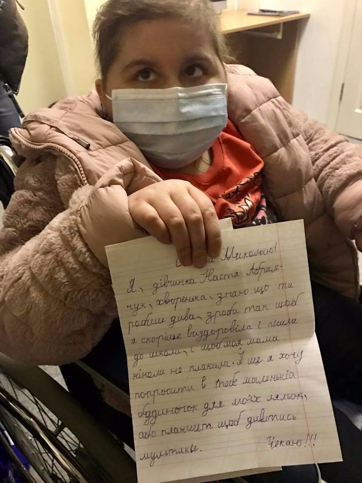 Ковельчанка Настя Абрамчук, хвора на написала лист святому Миколаю, у якому просить в Чудотворця одужання та щоб мама не плакала.