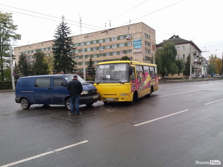 У Луцьку сталася аварія, під час якої зіткнулися мікроавтобус і маршрутка.