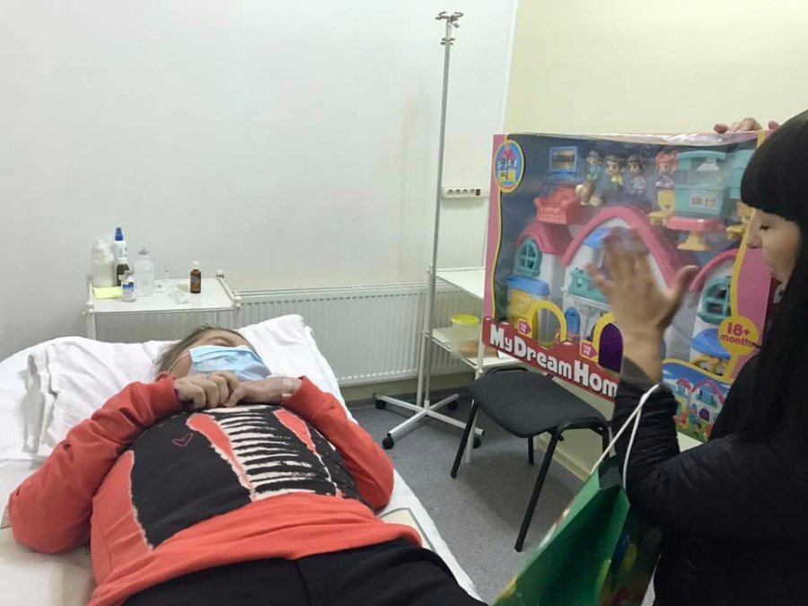«Подаруночки Люба вручила прямо в Інституті нейрохірургії Ромаданова, де нашому сонечку робили чергове дослідження. Святий Миколаю! Молимо тебе... Виконай всі побажання з листа Настусі - даруй їй здоров'я! Щоб мама Світлана на плакала...» - йдеться у дописі.