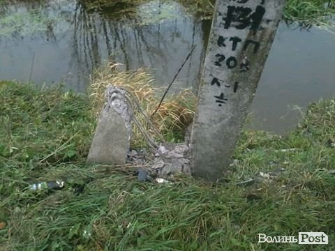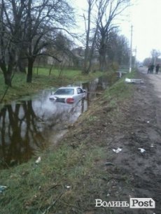 Аварія на Волині: авто збило стовп і «потонуло» в каналі. ФОТО