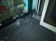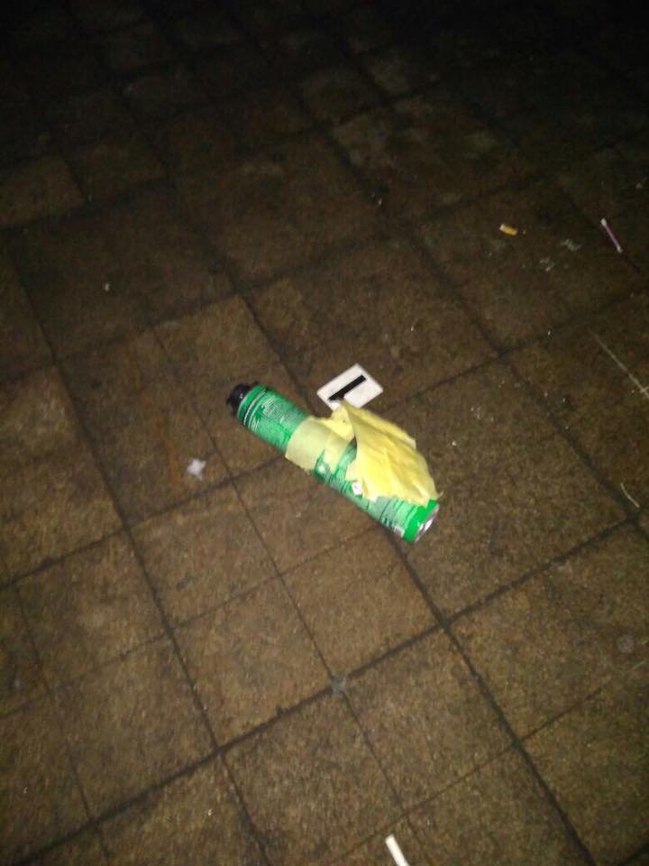 За попередньою інформацією, двоє-троє осіб кинули невідомі піротехнічні предмети і втекли.