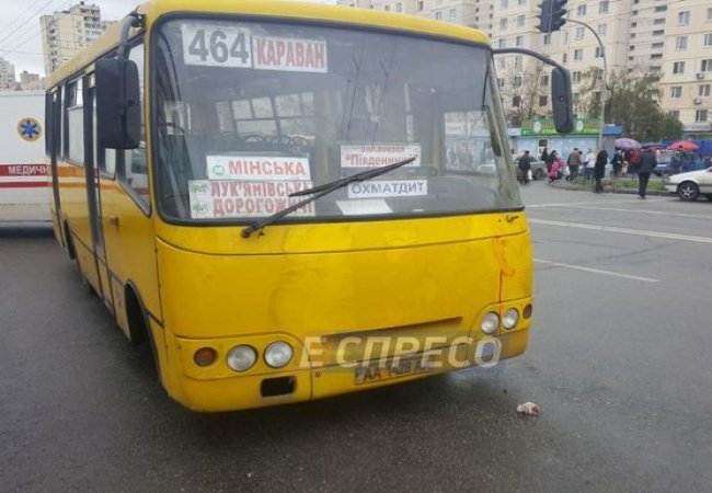 У суботу, 4 листопада, у Києві на вулиці Героїв Дніпра біля зупинки громадського транспорту сталася аварія за участю маршрутки №464.