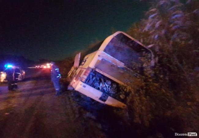 Неподалік Луцька рейсовий автобус з пасажирами злетів у кювет.