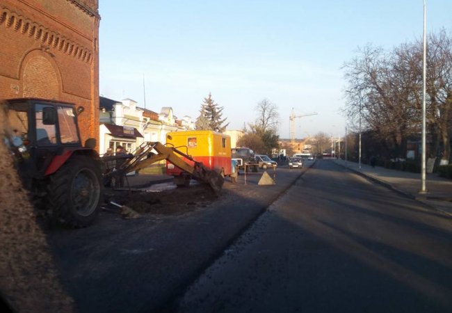 У Володимирі-Волинському працівники водоканалу зняли частину асфальту, який був покладений 5 та 6 листопада.