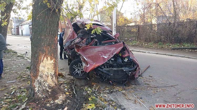 За попередніми даними, близько 4 години ранку водій автомобіля Mazda, 28-річний житомирянин, рухаючись по вул. Старовільський, перевищив безпечну швидкість руху, не врахував дорожні умови, внаслідок чого не впорався з кермуванням. Автомобіль зіткнувся з деревом, а потім і зі стіною будинку.