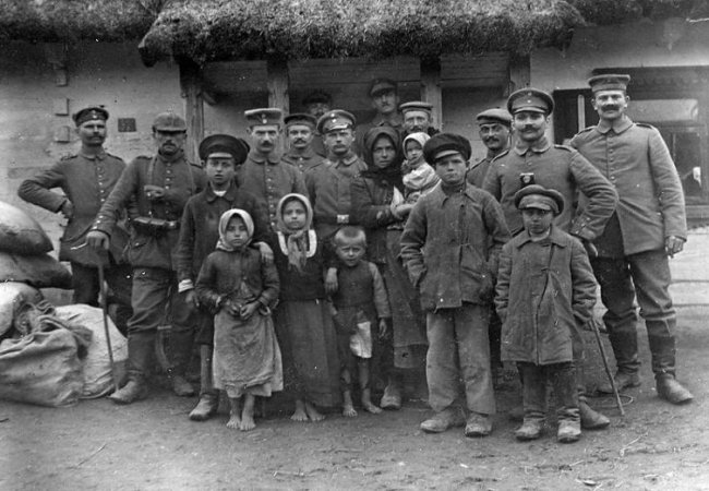 У 1915 році сюди вступили австрійські та німецькі війська, які можемо бачити на фото разом із місцевими мешканцями.