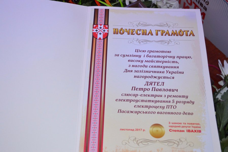 Як поділився враженнями Петро Дятел, який уже 16 років працює у пасажирському вагонному депо, для нього це було приємною несподіванкою, в яку і досі не може повірити. Як він сказав, це і є визнанням за багаторічну роботу, а ще - хороший подарунок до 60-річного ювілею, який чоловік відзначив два дні тому.