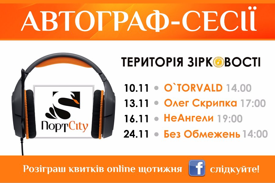 10 листопада в гостях у «ПортCity» роздаватиме автографи «О.Torvald», 13 листопада – Олег Скрипка, 16 листопада – гурт «НеАнгели», а 24 – музиканти з «Без Обмежень».
