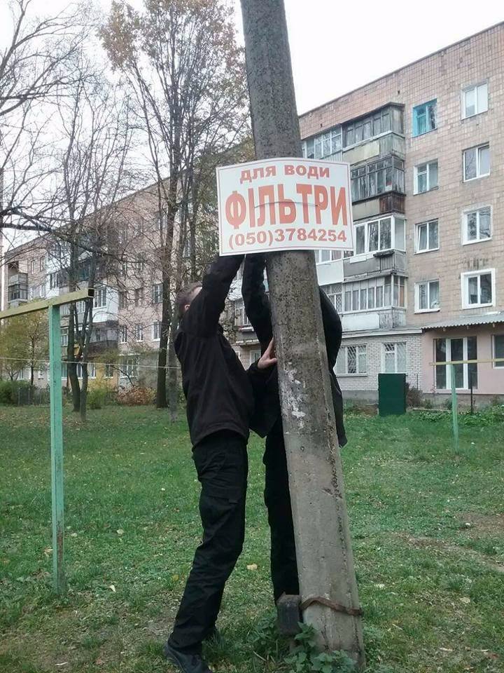 Рекламна продукція була розміщена без дозвільних та правовстановлюючих документів. Невідомі особи «обвішали» нею мало не весь район. Електроопори та дерева в дворах нагадували рекламне бюро, яке займалось наданням різноманітних послуг.