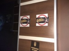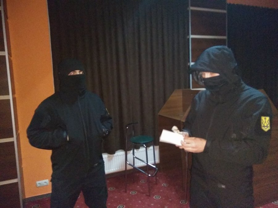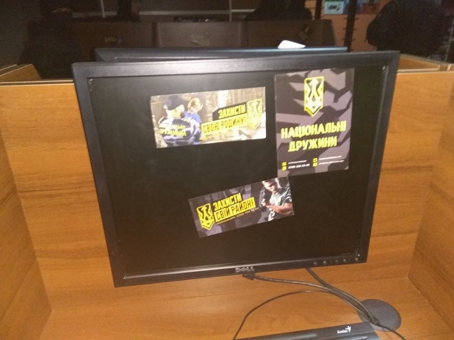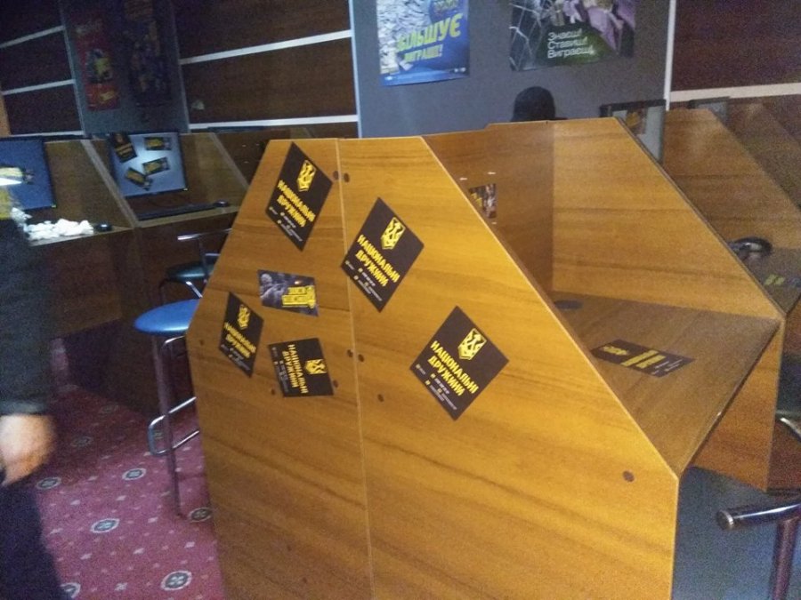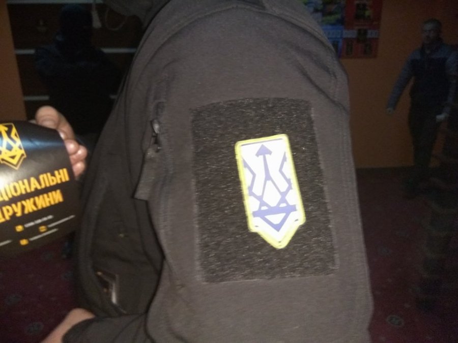 Декілька десятків зайшли в заклади на вулиці Лесі Українки та проспекті Перемоги. Звідти попрохали вийти відвідувачів. Потім на меблях наклеїли наліпки "Національних дружин".
