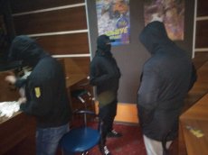У Луцьку учасники громадського формування "Національні дружини" заблокували гральні заклади "Золота підкова" мережі "М.С.Л." та вимагають їх закрити.