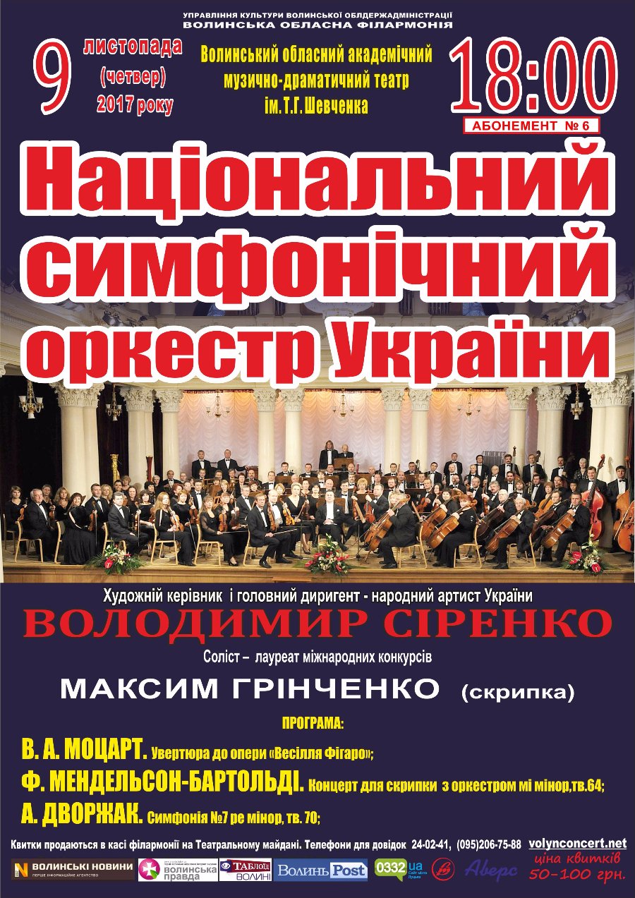 Любителі класичної музики мають чудову нагоду отримати справжню насолоду, відвідавши концерт Національного симфонічного оркестру України (художній керівник – народний артист України, лауреат Національної премії імені Тараса Шевченка, професор Володимир Сіренко).
