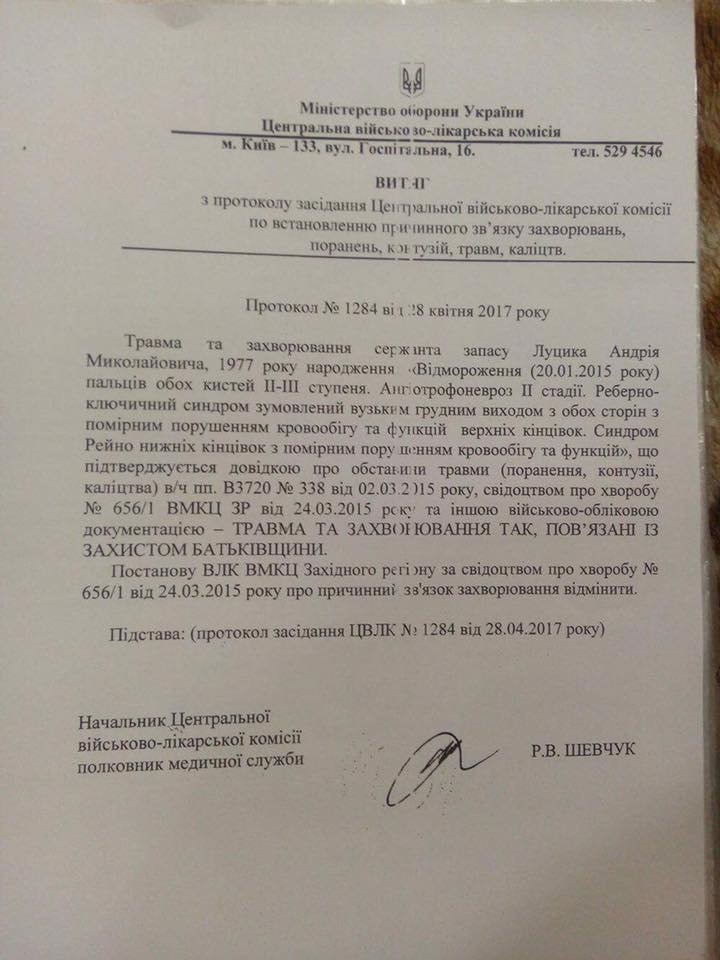 «Саме з нестерпною біллю живе з зими 2015 року захисник Донецького аеропорту Луцик Андрій (80 бригада). Андрій відморозив руки і ноги на ДАПі. Понад 2 роки Андрій бореться не тільки з біллю – він бореться за свої живі руки, з постійною загрозою ампутації», - нагадує вона.