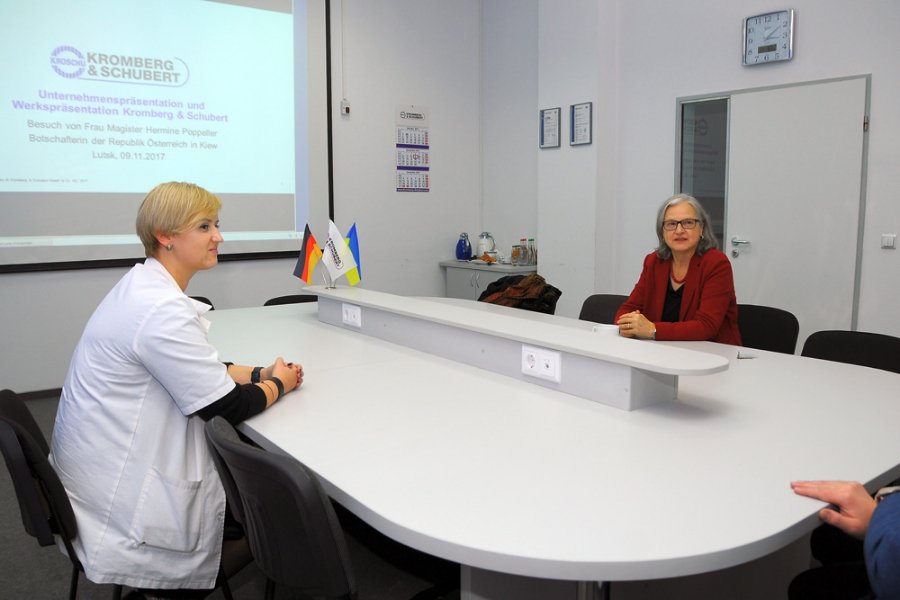 9 листопада виробничі потужності луцького підприємства “Кромберг енд Шуберт” відвідала Надзвичайний і Повноважний посол Австрії в Україні Герміне Поппеллер.
