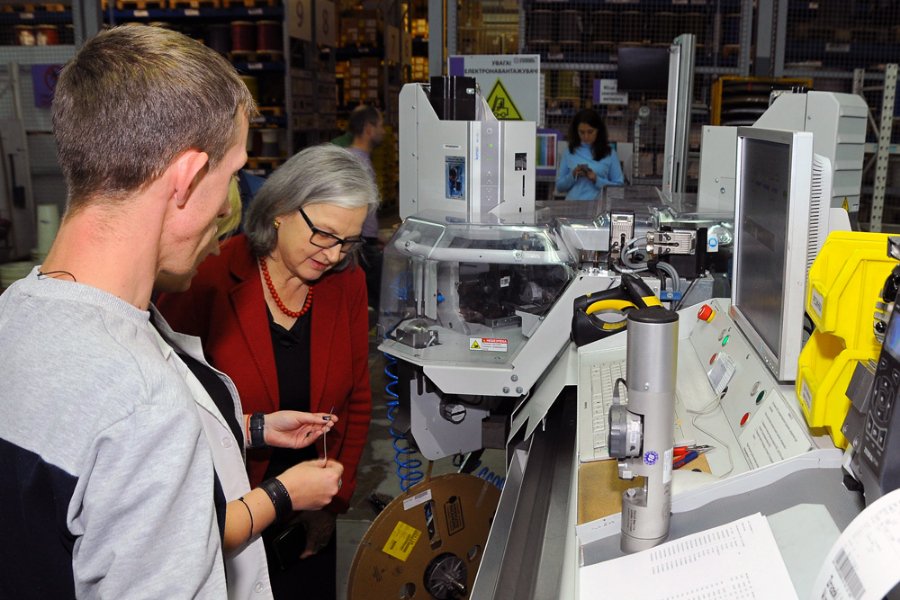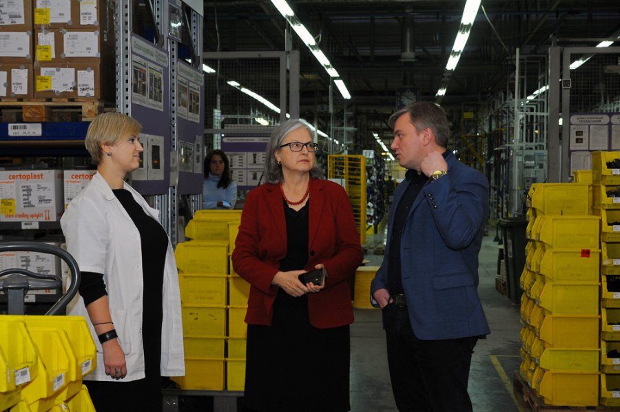 Пані Поппеллер спілкувалася з фінансовим директором підприємства Олександром Шаварським та ознайомилася з історією розвитку заводу. Керівник виробничого департаменту підприємства Вікторія Пазичук провела екскурсію виробництвом.