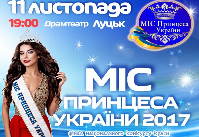 11 листопада о 19.00 в Драмтеатрі ім. Т. Г. Шевченка, на фіналі конкурсу лучани та гості міста матимуть прекрасну нагоду обрати з-поміж учасниць найгарнішу «Міс Принцесу України» 2017.