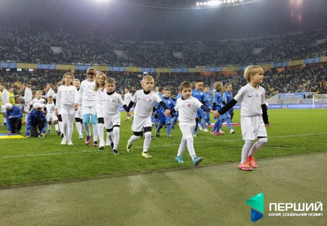 Юні футболісти вивели на поле трьох гравців національної збірної України на матч зі Словаччиною.