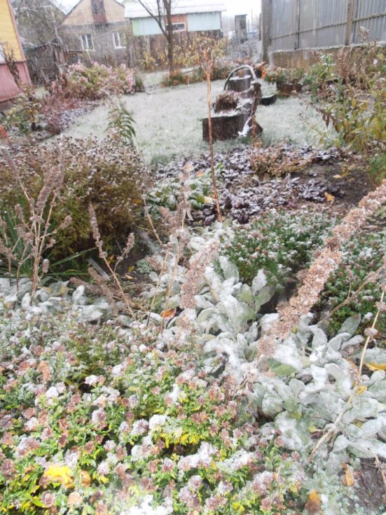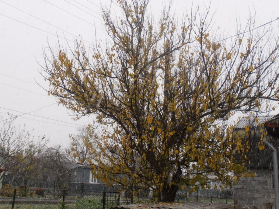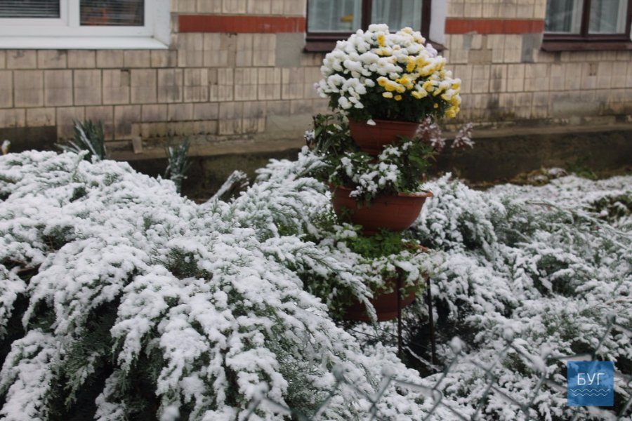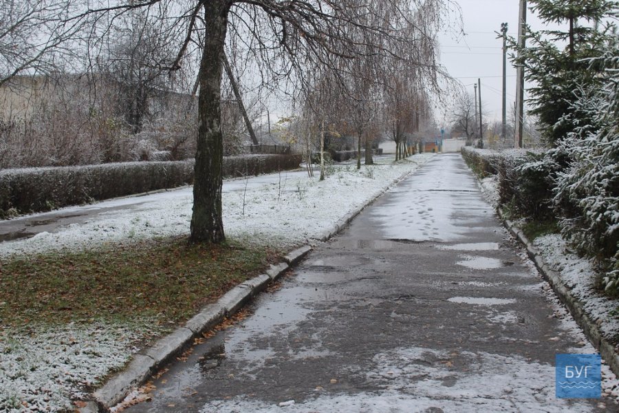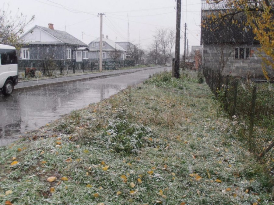 Календар показує, що зимі ще не час, проте в природи свої закони та правила і осінню землю вже сьогодні вкрило снігом. Лапатий та мокрий він одразу вкрив ще подекуди зелену траву, голі дерева та кущі, дахи будинків.
