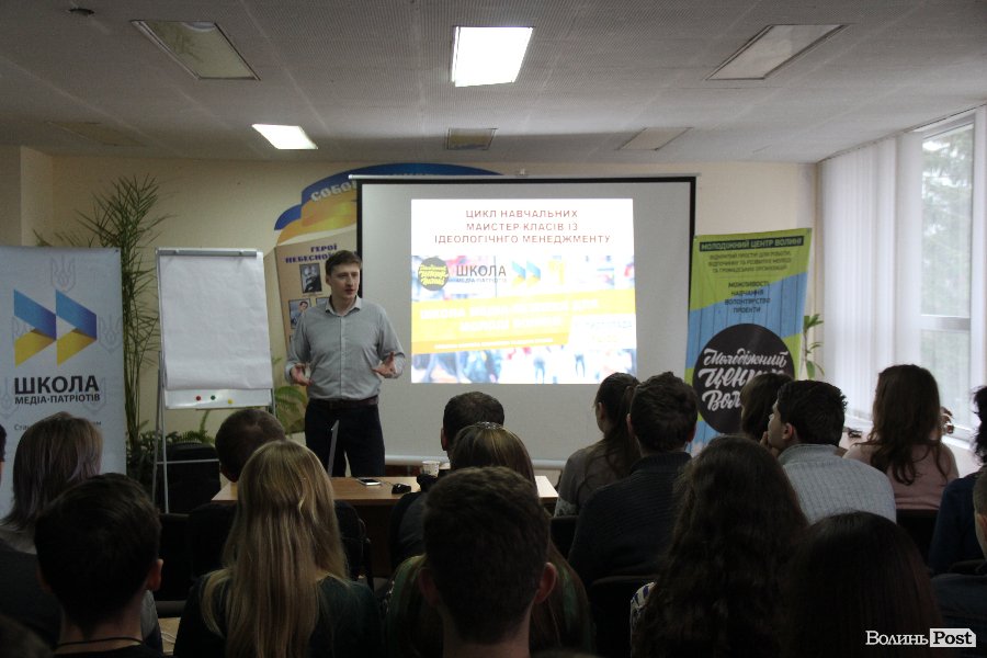 Школа медіа-патріотів разом із «Активною громадою» та Молодіжним центром Волині розпочинають серію навчань, аби підготувати фахівців з ідеологічного менеджменту, які готові будуть захищати Україну на інформаційному «фронті».