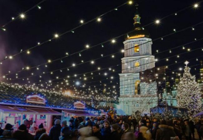 Ялинку на Софійській площі у Києві прикрасять 3,6 км неонових гірлянд, а за нею створять інсталяцію – амфітеатр під казковим «зоряним небом», де буде 33 км гірлянд.