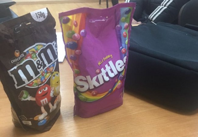 В результаті огляду, в сумці громадянина України 1986 року народження - пасажира цього автобуса, було виявлено понад 300 грамів психотропних пігулок. Останній вдався до хитрощів, адже запакував таблетки, які заборонені до переміщення через кордон, в упаковки з-під цукерок «M&Ms» та «Skittles». Для цього чоловік висипав цукерки та наповнив упаковки таблетками. В одній із упаковок знаходилось 179 грамів таблеток, в іншій - 130 грамів загальною кількістю 250 штук.