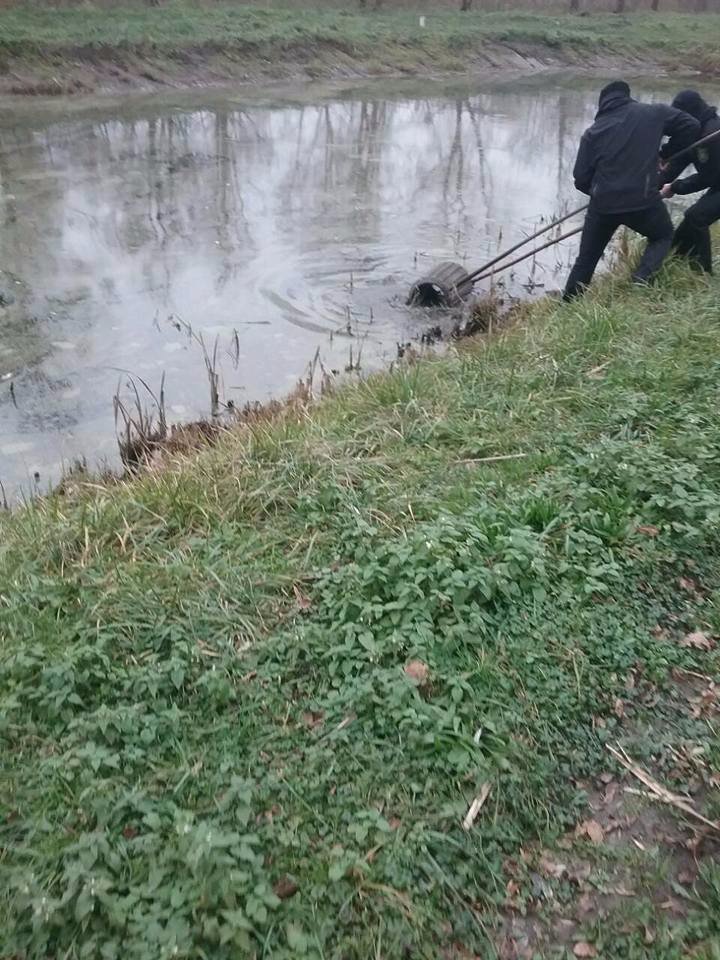 Муніципали показали, як виловлювали смітники з канави. ФОТО