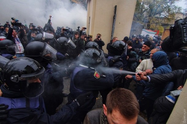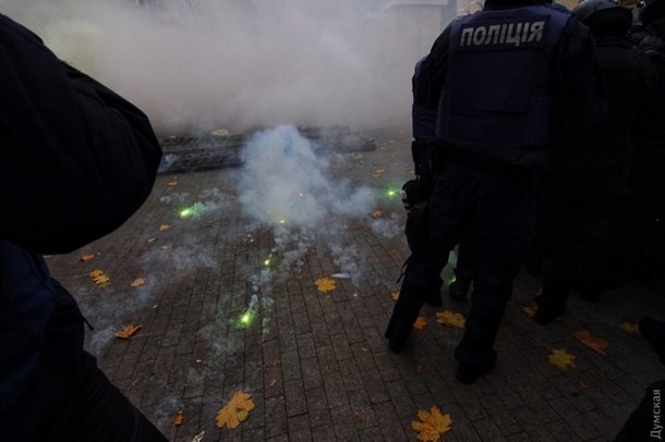 Відзначається, що бійку спровокувала група осіб у балаклавах. У результаті травмовано були шістьох поліцейських. Один із них - начальник поліції Одеської області Дмитро Головін, він отримав травму голови.