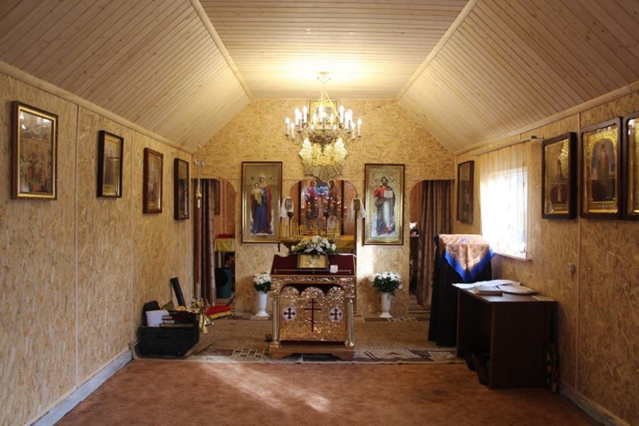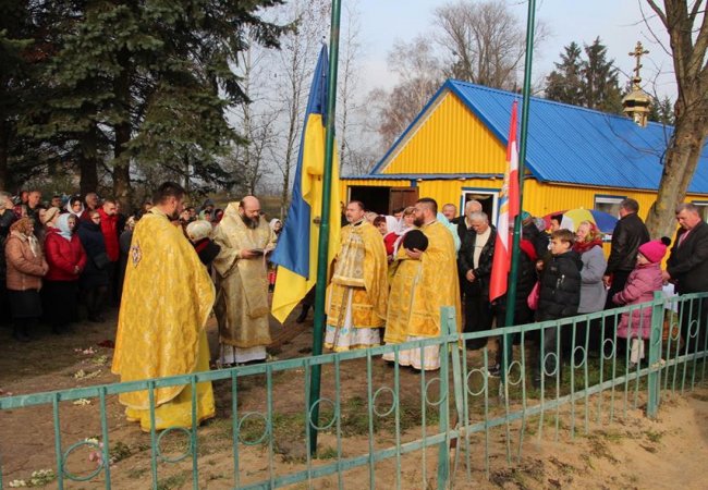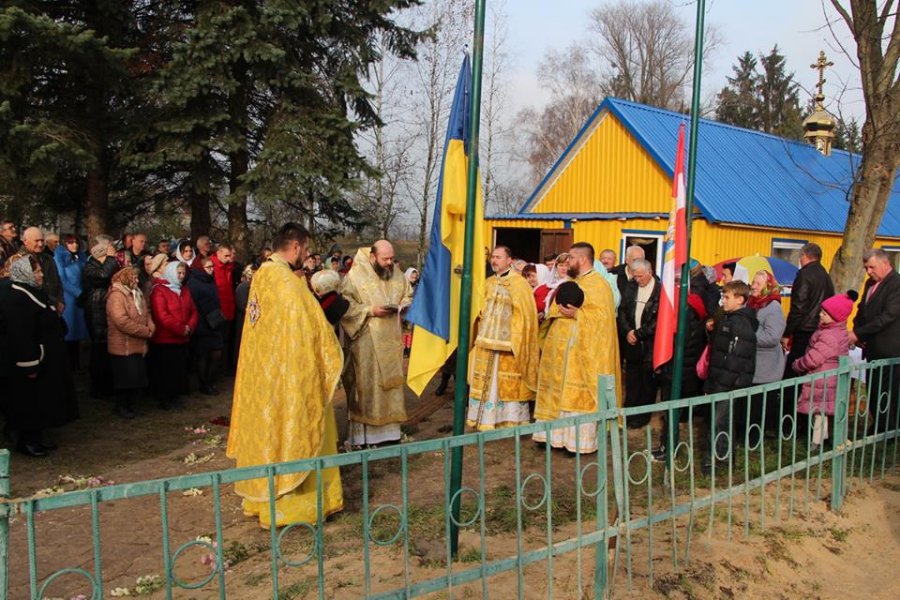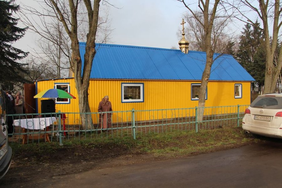 У селі Піддубці Луцького району освятили тимчасовий Петропавлівський храм, пофарбований у кольори національного прапора.