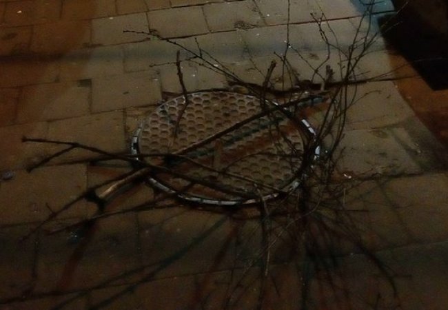 Станом на 10 годину 20 листопада люк досі відчинений. Його лише присипали гіллям та обв’язали стрічкою.