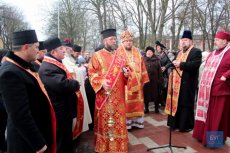 Далі хода рушила на вулицю Небесної Сотні, де біля меморіальної дошки відбулося служіння панахиди.