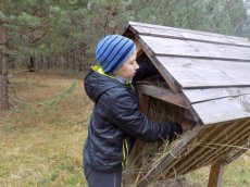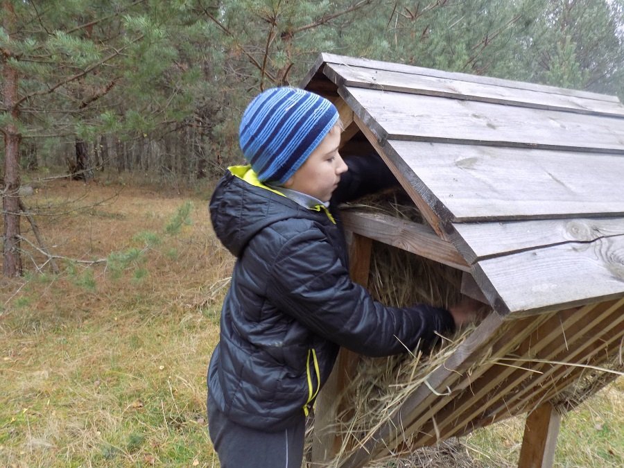Другою зупинкою для дітей став підгодівельний майданчик для козуль та лосів. Саме тут діти і закопали свій «подарунок» та насипали туди солі, поклали сіно у годівниці.