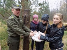 Учні Рудниківського шкільного лісництва на Волині разом із лісівниками побували у місцях підгодівлі диких звірів.