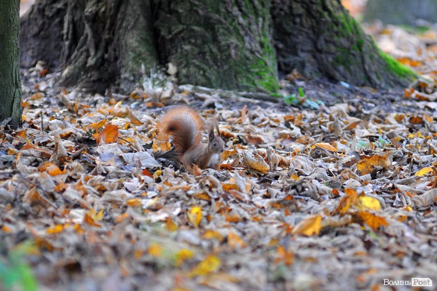 А ще тут можна побачити тварин, які є чи не в кожному міському парку - руденьких білочок. Вони сновигають серед дерев, шукають поживу та готують запаси на зиму.