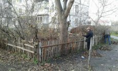 Муніципали зібрали повну вантажівку дерев’яних конструкцій, проводячи демонтаж саморобних парканів та огорож роботи в дворах на вулицях Євгена Коновальця та Арцеулова.