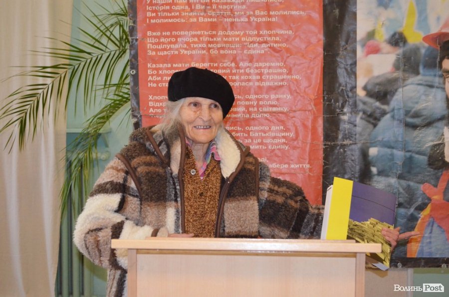 Також Леся Бондарук подарувала одну книгу активістці, котра брала участь у всіх тих буремних подіях, та приходила на всі віче - Людмилі Філіпович. Жінка є членом Української Гельсінської Спілки на Волині ще з 80-их років.