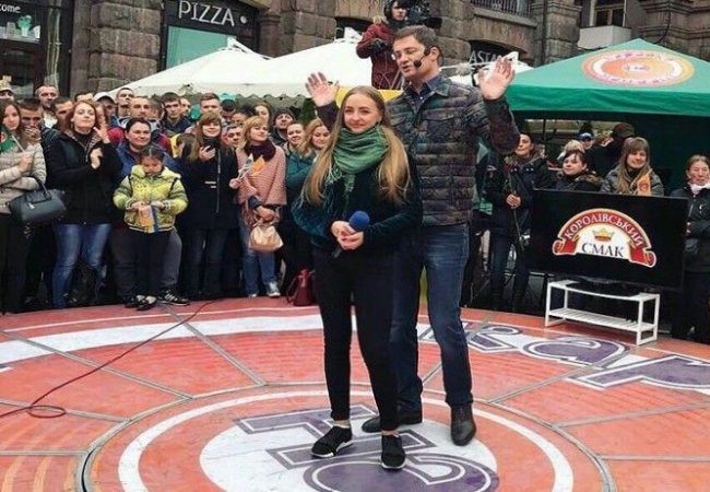 Оксана Андросюк свої вокальні здібності показала під час зйомок на Хрещатику шоу «Караоке на майдані».