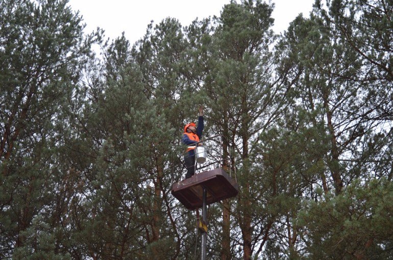 Варто зазначити, що збір шишок – досить непростий процес. Бо дуже часто найкращі шишки ростуть на верхівках дерев. Тож діставати їх доводиться із допомогою спеціальної техніки. Щоразу працівники підприємств , які залучаються до цієї роботи, проходять медогляд, інструктаж із охорони праці. І далеко не кожен може працювати на висоті.